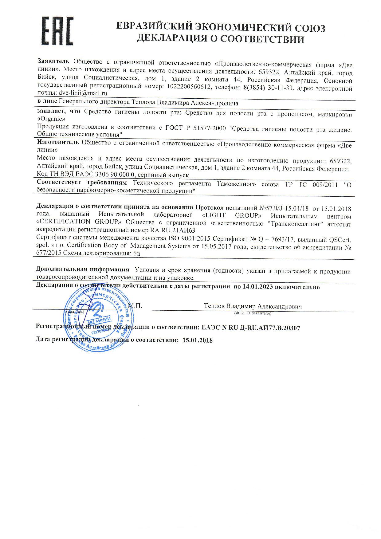 Способ применения: ежедневно использовать для орошения полости рта 2-4 раза в сутки или чаще при необходимости.